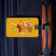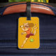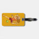 Den idrotts- puman som ha på sig den orange skjortan och bruna kortstunder, skapar ett stort försök att utföra en kraftig dundersuccéstund som leker tennis