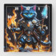 Modigt Kattdjur Knight i Fiery Fantasy-inställning Fyrkantig Klocka