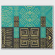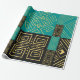 En häpnadsväckande sammansättning av modulära afrikanska stamplattor mönster, med fet guld-linor på rikens svarta och tealbakgrunder. Dessa geometriska och symboliska motiv inspireras av traditionell afrikansk konst och skapar dem perfekt för både modern och kulturell design. Använda det här sömlösa mönster för hemmabruk, tillbehör till mode eller tekniska produkter. Perfekt för kuddar, halsdukar, mugg, yoghattar, bärbara datorer med mera. Unikt lappverk av stamsymboler med modulär design - perfekt för fullt-blekt designer, afrikansk kulturkonst uppfyller modern design
