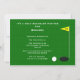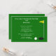 Denna inbjudan till mogentajmfest för golfare har en grön yta med strukturerad look och en golfboll på väg mot det 18:e hålet. En rolig inbjudan till mogentajmfest för golfare! Upphovsrätt henishouseofpaper