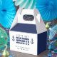 Blå och vit randig "Låt oss bli naughty" presentask för en ungkarl / ungkarlparty. Anpassa den med din egen text.