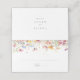 Det här musselfärgade platskortet för vilda blommor i bröllop är perfekt för ett rustiskt bröllop. Utformningen har grönt, rosa, , gult, lila, vattenfärgsblommor i multifärgaden. Anpassa baksidan av platskortet med namn på bruden och trippen och datum.