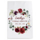 Den vackra anpassningsbarna föredrar påse eller presentbehållare shopping bag stil för en möhippa eller babydusch med röd ros blomkrans med eget namn och datumalternativ.