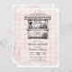 Minneshögen med denna "Fresh off the Market" inbjudningskort för möhippan Den vackra handskrivna typografin med rosa gingham är snyggt och roligt. Har en bagerivagn i hand plockade med fransk. Perfekt för ett bageri, en fransk marknad eller en bonddryck i stil med en aning charm. Se samordna saker i vår butik, Enchanted Finch.