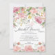 Vackert vattenfärgsfärgat rosa inbjudningskort för möhippan med handskrivet typsnitt och koordinerande blommigt bakåt.