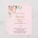 En rosa bakgrund. Dekorerad med en blommigt för guld och rosa, blomma från ro och grönt, vattenfärgad eukalyptus löv, sprig, grönsak och faux ro sprig. Anpassa och lägg till bridens namn för att vara och närmare party. 1 lakan = 1 inbjudan tryckt kant till kant.