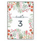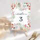 Modern boho bright vild blommor bohemian möhippa bröllop bord nummer. Med rosa, persikor och grönt hues botaniska blommor som inspirerats av vilda blommor och vattenfärgade, rustiska trädgårdar med subtle greenery och modern boho script typography on white bakgrund.