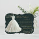 "Elegant bröllop Gown Guld Gnistra Inbjudningskort för möhippan." Rik mörk svart bakgrund med en mjuk elfenbensvit klänning och glitter-stjärnor från guld som släcks av denna vackra Möhippa Inbjudan och alla dess matchande dekorplagg från party. Elegant, prinsessan stil snöre, broderade bröllop-klänning som var handmålad i pasteller för att ha en ethersk skiss av mode-designern stil. Konstverk av internationellt licensierad konstnär och formgivare, Audrey Jeanne Roberts, upphovsrätt, alla höger förbehållna.
