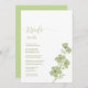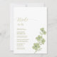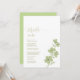 På framsidan visas blommor i grönten vid högerna och inbjudningskort för möhippan på oliv grönt vid den lämnat sidan. Den här unika eleganten är perfekt för möhippan.