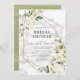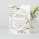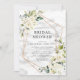 Vackra och elegant, denna moderna marmorvita blommigt inbjudningskort för möhippan i ro, av kopparmarmor, har en härlig geometri för faux-folie i ro, försedd med vackra, handmålade vattenfärgade blommigtar och grön i vita och grädda nyanser, på vit marmorbakgrund. Personlig i grått- typografi av elegant. Kortets baksida har en grönt som färgats vattenfärgen struktur. Copyright Elegant Inbjudan, alla höger reserverade.