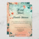 Fira en möhippa med den här vita korall- och tealinbjudan som innehåller ömtåliga flytande blommor, snöre-accenter och lysande detaljer. Den mjuka övertoningsbakgrunden skapar en sjudande atmosfär, perfekt för en boho eller ett orustiskt temat firande. Anpassa med händelseinformation och ge en unik fingervisning för den speciella dagen. Perfekt för brider som söker en blandning av sofistikering och charm.