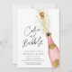 Rosa och Guld Champagnekummel och Bubly Inbjudningskort för möhippan. Designad med en vacker vattenfärg Champagne Flaska. Matchande objekt i vår butik Cava Party Design.