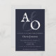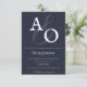 Möhippa av marinblått minimalistiskt monogram inbjudningar