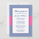 En snyggt marin blå chevron mönster med rosa accents finns på detta moderna inbjudningskort för möhippan. Preppy och söt! Anpassa enkelt för din möhippa.