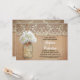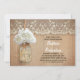 Cute Rustic inbjudningskort för möhippan med mynning burk med vit blommar av hydrangea. Perfekt inbjudan för land möhippa med vintage snöre och nödvirkesaccenter.