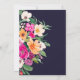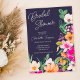 Elegant ljusa och djärva moderna sommarblommor i vår med söt överdimensionerad blomma i vild och möhippa med penselskript med modern kalligrafi med klarnyare rosa, orange, grönt och gula blommor på marin blå bakgrund.