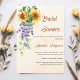 En gyllene vattenfärgad bakgrund som dekoreras med vattenfärgade solblommor, lavenderblommor och eukalyptus. Personalisera och namn om bruden som ska vara och detaljer.