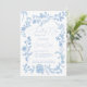 Något blått innan jag gör blommigt vattenfärgen inbjudningskort för möhippan, med handmålad vintage Victorian Fransk blåa blommor i ljusblå chinoiserie stil med en kalligrafi av eleganten.