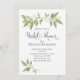 Möhippa bröllop blommigt inbjudan. Med vackert botaniskt baby andedräkt och grönt. En enkel utformning av eleganten med minimal inslag för blommigt av än snyggt. En Möhippa med kalligrafi-skript tillsammans med vacker blommigt inslag gör detta till ett underbart sätt att börja med elegantens möhippa.
