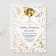 Denna vertikala möhippa-inbjudan har en svart och guldknippe ballonger och en guld konfetti och strömmande bakgrund. Baksidan delar guld konfetti och strömmande bakgrund. Anpassa texten i mallfälten eller klicka på Anpassa för att välja en typsnittsstil, storlek och färg du föredrar.