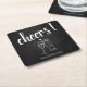 Den här anpassningsbarnas roligt "Cheers!", pappra dryckekatastrofer är perfekt för din möhippa när du tar hem favörer/presenter! Den moderna designen har en faux-kritbakgrund accentuerad med vit skripttext. Anpassa namn och år för bruden och brudgummen för en verklig personlig. Checka ut mer från den här samlingen för att blanda och matcha dina favoritunderlägg.