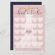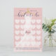 Roligt och snyggt möhippa bingo möhippa-spelkort. Roligt att spela på möhippan party. Elegant rosa shimming-klänning med vintage i guld som visas i bakgrunden. Originalteckningar och design efter modelldokument.