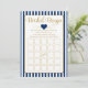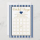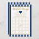 Möhippa-bingo-kort i marinblått och guld. En roligt möhippa-aktivitet sport marin blå och vit rand med guld faux glitter accent och guld text. Underhållning och elegant, den här möhippan-bingo-matchen instruerar gästerna att skriva ner de artiklar de tänkor den blivande bruden kommer att ta emot, den första personen som får ut 5 på rad "Bingo!"