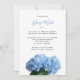 Möhippa till paret. Blå vattenblommor är utformade på vit papper med svart, tryckt text. Anpassa enkelt text i tre ställe med namn av bruden och trippen i ljusblått skript. Inkludera "värdbaserad av" och registerinformation efter behov. Lägg till eller ta bort blanksteg om du vill att texten ska passa in i utrymmet. Omvänd är helljusblå. Realistiska, ljusblå vattenblommor dekorerar kortens grund med grönt utseende. Den här inbjudan är en del av designlinjen "Blue Heaven".