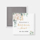En vit chic bakgrund. Dekorerad med en vit blommigt, blomma (peony) och grönt vattenfärgad eukalyptus löv, sprig, grönsak och faux guld sprig. Anpassa och lägg till namn i bruden som ska vara och ett datum. Svarta och gyllene brev. Perfekt som en keepé, partiförmån eller som en besparing av datumpåminnelsen för gästerna.