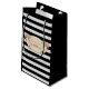 Modern presentsäck i möhippan i blommigt med svart och vitt rand. De här presentpåsarna är underbara för stora möhippor.