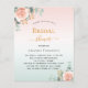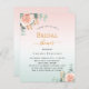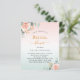 Ro guld och gröntens övertoningsbakgrund. Dekorerad med en blommigt för guld och rosa, blommor från ro och grönt vattenfärgad eukalyptus löv, spriter, grönsaks- och faux ro sprigs. Anpassa och lägg till bridens namn för att vara och närmare party. Svart och guldfärgad färgad brev. Bakåt: ro guld och grönt övertoningsbakgrund färg. 1 lakan = 1 inbjudan tryckt kant till kant.