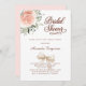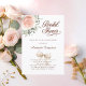 En vit chic bakgrund. Dekorerad med en blommigt för guld och rosa, blomma från ro, grön och med en båge. Anpassa och lägg till bridens namn för att vara och närmare party. Bakåt: rosa bakgrund.
