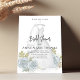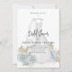 Den här designen har ett inbjudningskort för möhippan, med en blommigt, vattenfärger och elegant blue stil, med kalligrafi av elegant och en klassisk bröllop-klänning, grå