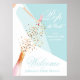 Denna möhippa poster med en gnistrande faux-sekvin från vin flaska och en brud i hennes klänning och slöja med en glasflöjt. Ändra bakgrunden till färg, vi visar turkos och MATCHING-objekt i vår samling.