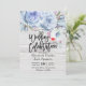 Inbjudningskortmallar för Bröllop Firande - Elegant Blue Watercolor Natural Boho Blommigt Feathers och handskript på Rustic White Wood Background. En Perfekt för din stora dag. Alla textstorlekar i stil, färg, kan ändras för att passa dina behov!