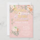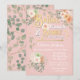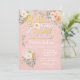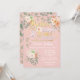 rosa, faux guld och grönt Inbjudningskort för möhippa för en brunch med champagne bubblande. Har blommor med söt och löv av eukalyptus och foliebubblor av faux guld. Lustigt grym.