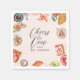 En unik napkin för att slutföra sökningen. Din möhippa. Med brunch mat-vattenfärgsillustrationer som omger ett huvud med texten "Cheers to kärlek..Future MRS. Om du behöver någon matchande artikel, säg till Maria Lycklig att hjälpa till!
