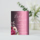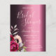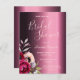 En modern och elegant Inbjudningskort för möhippan. En burgundisk och lila faux metallisk tittar bakgrund. Dekorerad med blommor av mörkens lila och av burgundy och ro rosa. Mallar för namn, duschens datum och ställe. Texten: Möhippan är skriven med ett stort handskript i stil, ro guld färgad brev. Baksida: En burgundisk och lila faux metallisk tittar bakgrund