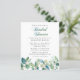 Lägg märke till firande i kärlek och början på en vacker resa med vårt Grey Eucalyptus Inbjudningskort för möhippan-kort. Den här eleganten och den fantastiska designen är inspirerad av naturens lugn, och ger möhippan en liten grej. Vårt inbjudningskort har en fantastisk arrangemang av lush-eukalyptus löv, som är tätt sammanflätat med charmerande gröna accenter. Gröntens pulserande skuggor symboliserar tillväxt, harmoni och nystart, som perfekt fångar kärnan i den blivande briden speciella dagen.
