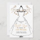 Möhippa Elegant Guld Black White Party-inbjudan. Inbjudningskort för möhippan är designat med en skisserad Bridesmaid Dress på en vit bakgrund med svart text och accentuerad med texten guld löv och guld färgad. I texten på framsidan ingår: Brides Namn, Händelsemeddelande och Händelsemeddelande. Den omvända sidan accentueras med guld löv mot svart bakgrund. Den omvända sidtexten innehåller: Information om plats, OSA och Möhippa Register. Om du vill anpassa dig infogar du bara texten i vår enkla mall och ersätter exemplet. Inbjudan finns tillgänglig både vid utskrift och hämtning.