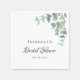 En chic vit bakgrund som dekorerats med grönt vattenfärgad eukalyptus grey, löv och sprit. Anpassa och lägg till namn i den brud som ska vara och datum. Svart färgad brev. Texten: Möhippan är skriven med ett handskript i trendiget stil.