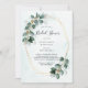 Dessa moderna inbjudningskort för möhippa har en vattenfärgad bladdesign med eukalyptus löv och faux guld geometric ram. Anpassa dem med din egen text. Matchande produkter tillgängliga