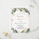 En vit bakgrund som dekoreras med eukalyptus grey och golden löv och faux guld glitter stoft. Personalisera och briden som ska vara namn och party. Svart och guldfärgad färgad brev. Bakåt: vykortsdesign. Tips! Om du inte vill att det ska se ut som ett vykort klickar du på anpassa, går till baksidan och tar bort delaren och lägger till frimärke.