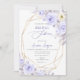 ArtsApp inbjudningskort för möhippan - dammig lila vattenfärg ro, dammsug eukalyptus foliage och vita daisy sprinklade med guld damm. Med en löstagbar faux-guld-gem-facets ram. Alla inslag kan redigeras. Copyright © 2023 ArtsApp™. Alla höger reserverade.
