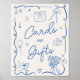 Meddela det avsedda området för kort och gåvor med vår charmerande fransk, Poster skylt. Det här fina tecknet har en återinspirerad design, som är försedd med vismiskt inslag, t.ex. ballonger, kameror, hjärtan och en underbar blombukett av blommor i vas. Det här tecknet är uppgjort av en lekfull, tyst vågigt av menyfliksområdet och tillför vintagens elegans till möhippans dekoration. Med anpassade färg och ett handskrivet typsnitt leder det utan problem gästerna till perfekten för att lämna deras goda önskemål och presenter. Låt detta tecken bli ett charmerande tillägg till er firande och se till att alla gåvor tas emot med kärlek och tacksamhet!