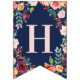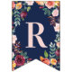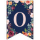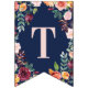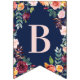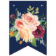 Bröllop-möhippan "Bride to Be"-banderoll har blommigtarna vattenfärgskonstruktioner med ro, dahlier, blommor och grönt i en fantastisk palett med burgundröd, gyllene gult, persikofärgad orange, rosa och grönt med marin blå bakgrund färg.