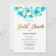 Dessa inbjudningar är designade med ett blått blommönster, skapat och målat av mig, och accentueras med faux guld-folie. Det är en vacker inbjudan till ditt speciella evenemang.