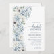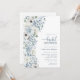 Blå Blommigten Inbjudningskort för möhippan. Gå in i en botanisk skönhetsträda och upptäck en fantastisk inbjudan med vackra handmålade vattenfärgade blommigtar. Den ömtåliga dammblått, kräm och vit ros och grönt eucalyptus greenery skapar en elegans, perfekt för din speciella händelse! Teckensnittet blått grått och nypa beröringar av blått kompletterar perfekt den tidslösa utformningen. Låt den här uttryckliga inbjudan uttrycka er roliga romantiska elegans och tidlös stil.