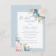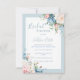 Söt rosa och vita och blå vattenområden, ro och andra blommor som liknar två hörn av denna vackra möhippa inbjudan. En inbjudan till perfekt bröllop möhippa för alla säsonger. Vattenfärgen är bara vacker. En vacker, samordnande blå bakgrund är bara underbar och tillför den här utformningen. Budgeterad storlek inbjudan.