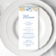 Transport dig till en elegant trädgård med vår Elegant Watercolor Blue Blommigt och Citrus Möhippa Menu, ett firande där sofistikering möter den uppfriskande charmen av citrusy delight. Den här utformningen är en sömlös blandning av blåblåskärans lugnande nyanser med gultens levande energi för att skapa ambitionen med ren förfining. Den här artikeln innehåller ömtåliga blå blommigtar och vismliknande citroner, med en tekanna som tillför en charm i extra. Gult och blått färg harmoniseras i en elegans som anger perfektens ton för en eftermiddag fylld med te, skratt och skönhet vid rätt tidpunkt. Klicka på knappen "Anpassa" för att ytterligare anpassa mallen. Du kommer att kunna ändra namn, inklusive stil, färg och storlekar. Matchande objekt är tillgängliga.